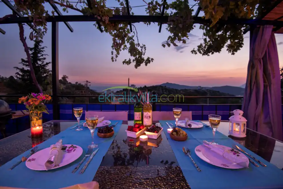 Panoramik kalkan ve deniz manzaralı, Sakin bir konum, Kalkan merkeze ve denizine yakın konumda bulunan kiralık apart ve yazlıklar, Kalkan günlük kiralık lüks tatil evi, Antalya'da bayram tatili için kiralık apartlar.