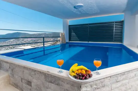 Antalya Kalkan kördere’de bulunan 2 yatak odalı, 4 kişilik konaklama kapasitesine sahip, modern ve tasarımlı, havuzlu, saunalı, balayı çiftine uygun, kalkan merkeze ve denize 5 - 10 dakikalık araba ile sürüş mesafesinde bulunan kiralık apart seçeneklerimizden suit lime siz değerli tatilcilerimizi bekliyor.