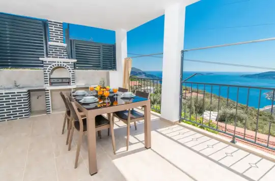 Panoramik kalkan ve deniz manzaralı, Sakin bir konum, Kalkan merkeze ve denizine yakın konumda bulunan kiralık apart ve yazlıklar, Kalkan günlük kiralık lüks tatil evi, Antalya'da bayram tatili için kiralık apartlar.