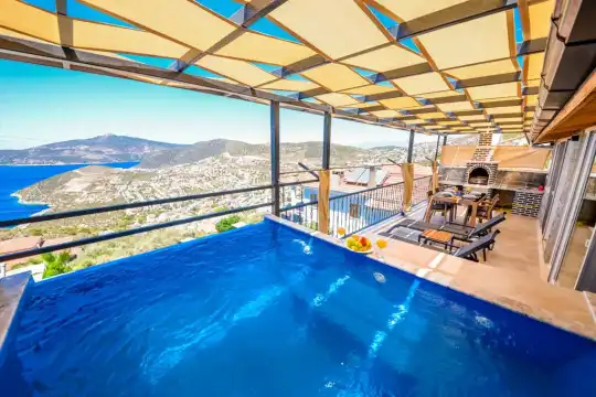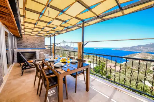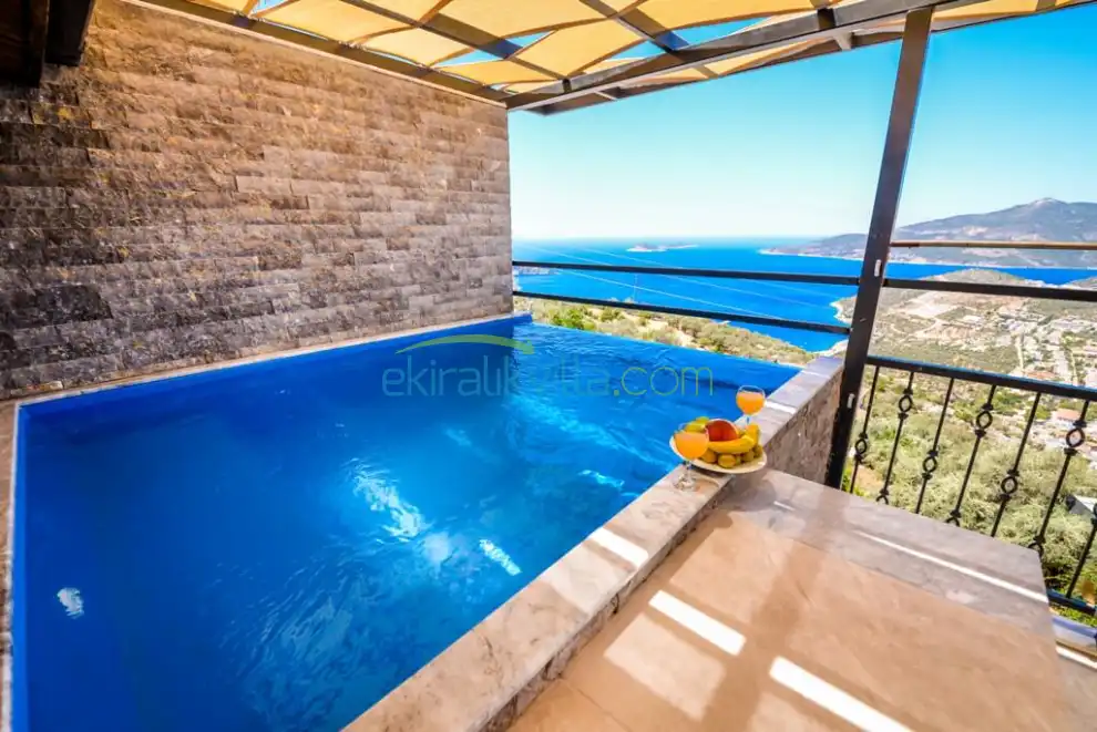 Eşsiz deniz manzaraya karşı balkon da yer alan 2 adet şezlong, yemek masası, küçük özel havuz ve barbekü bulunmaktadır.