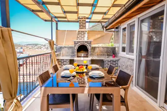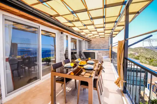 Panoramik kalkan ve deniz manzaralı, Sakin bir konum, Saunalı apart, jakuzili apart, Kalkan merkeze ve denizine yakın konumda bulunan kiralık apart ve yazlıklar, Kalkan günlük kiralık lüks tatil evi, Antalya'da bayram tatili için kiralık apartlar.