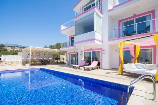 Kiralık Villa Akbel Pinky Kalkan Akbel mevkiisinde konumlanmış, doğa ve yeşillikler içerisinde özel bir konuma sahip, 2 yatak odalı, 4 kişilik konaklama kapasitesine sahip kiralık yazlık seçeneklerimizdendir.