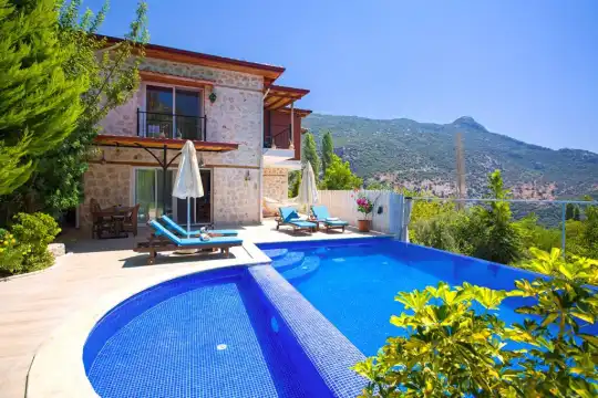 İslamlar köyü korunaklı villa, Kalkan Balayı villası, Jakuzili villa, Balayı çiftlerine uygun, Doğa ve Deniz Manzaralı, Kalkan Kiralık Lüks Villa, islamlar köyü Çocuk Havuzlu Kiralık Villa, Villa Muar İslamlar tesettürlü muhafazakar kiralık balayı villası.