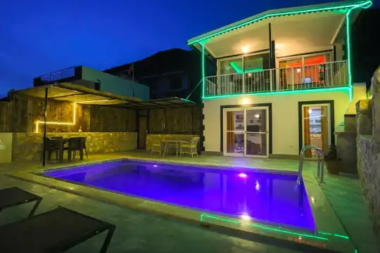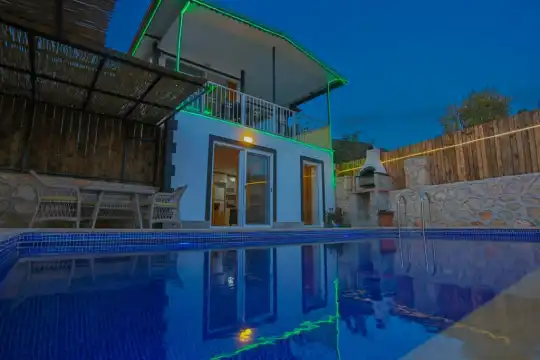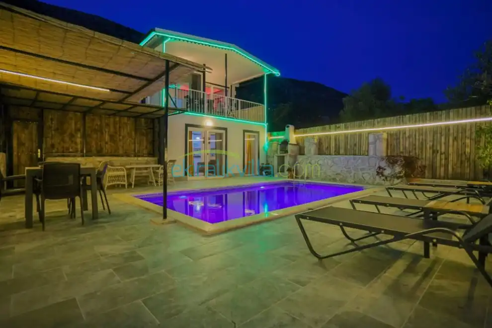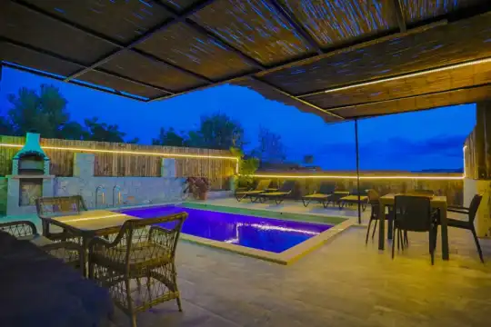 Gökseki korunaklı balayı villa, Kaş Balayı villası, Jakuzili villa, Balayı çiftlerine uygun, Deniz manzaralı, Kaş kiralık lüks villa, Tesettürlü muhafazakar aile villası.