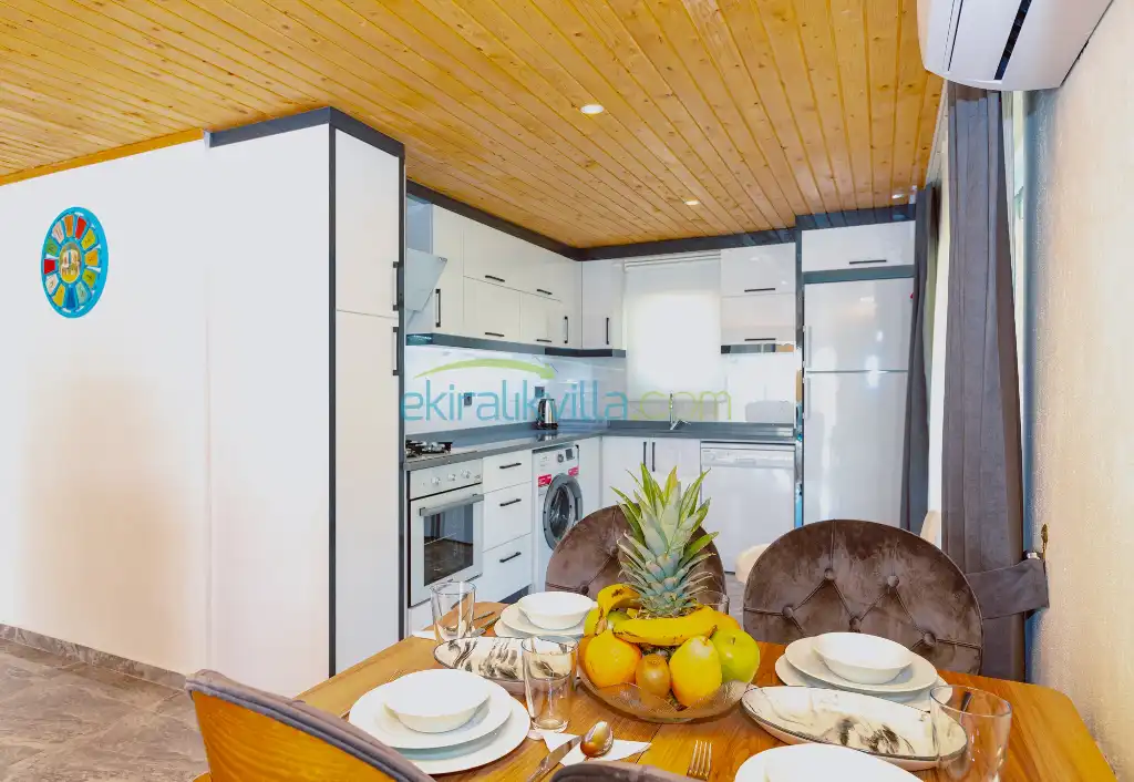 Villa Adalya İkizce rahat, geniş, lüks ve modern bir mutfağı vardır. Buzdolabı, bulaşık makinası, fırın, mikrodalga fırın, 4'lü ocak, ketıl, tost makinası, 4 kişilik yemek takımı, tava, tencereler, çatal, bıçak vb. Ayrıca tatil esnasında eksik bir ürün olursa bize söylediğiniz durumda hemen tedarik ediyoruz sizin için.