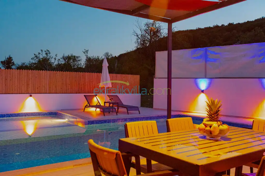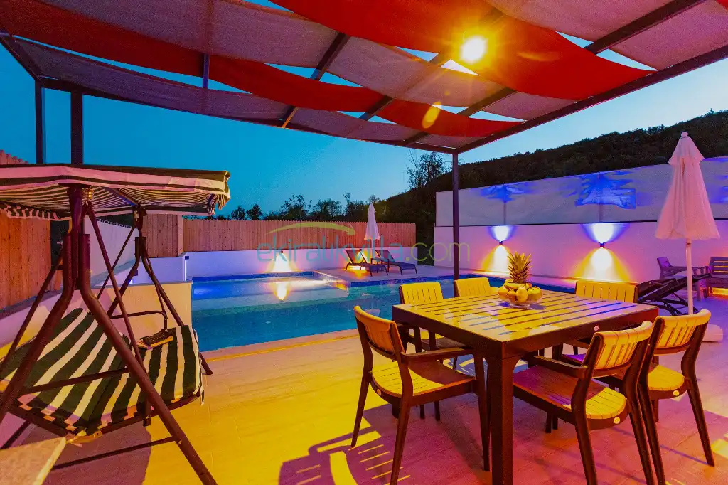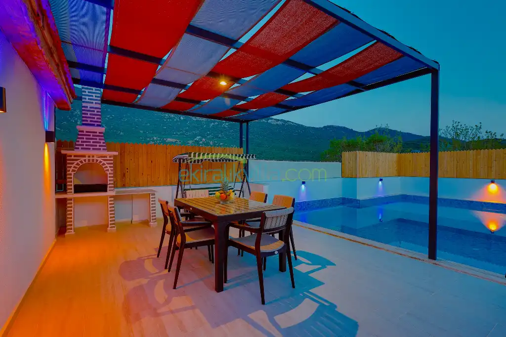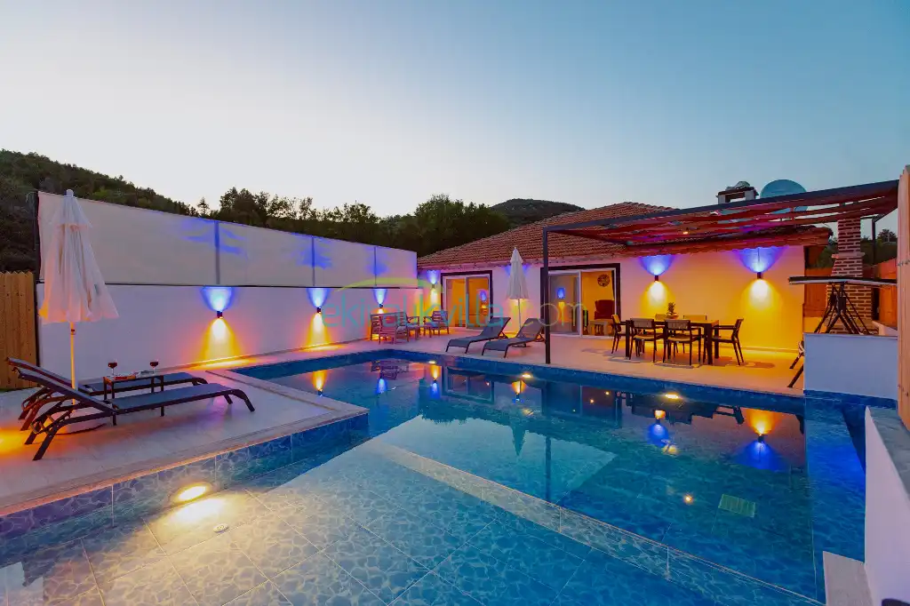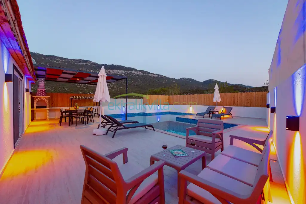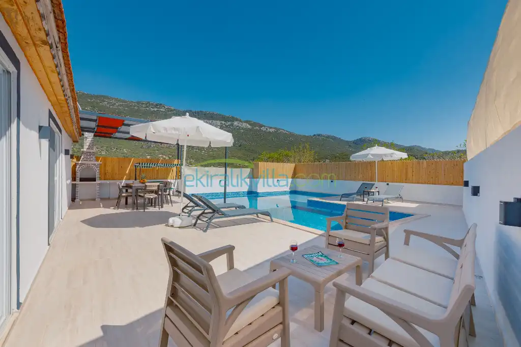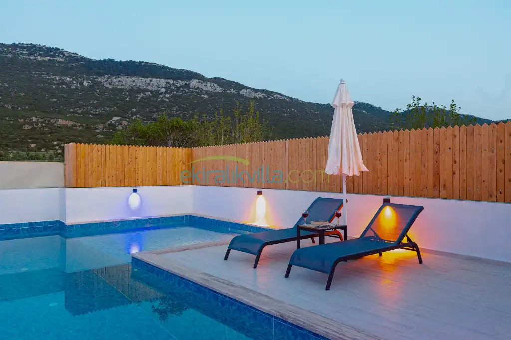 Doğa Manzaralı Villa , Kalkan Korunaklı Yazlık Kiralık Villa, Lüks ve modern iç ve dış dekorasyon, Sakin bir konum, Muhafazakar balayı villası, İkizce Günlük Kiralık Villa ve Yazlıklar.