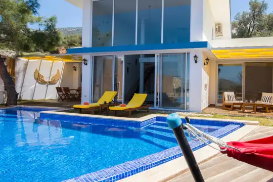Kalkan kiralık villa’mızın havuz etrafı dışarıdan gözükmemektedir, bu nedenle muhafazakâr tatil isteyen aileler veya muhafazakar balayı çiftleri için dış gözlerden uzak, sessiz ve sakin bir kiralık villada tatili amaçlayan tatilcilerimize uygundur.