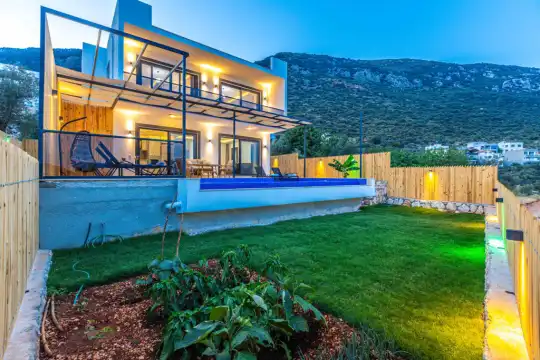 Gökseki korunaklı balayı villa, Kaş Balayı villası, Jakuzili villa, Balayı çiftlerine uygun, Deniz manzaralı, Kaş kiralık lüks villa, Tesettürlü muhafazakar aile villası.