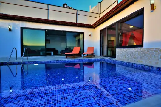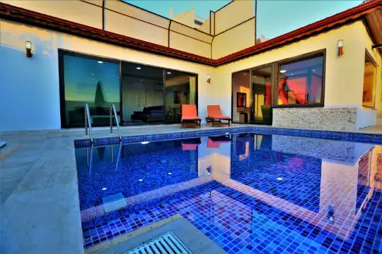 Balayı çiftine uygun, Muhafazakar aile villası, Romantik tatil, Denize yakın, Lüks ve kaliteli iç eşya, jakuzili tatil evi, Kalkan kiralık villa.