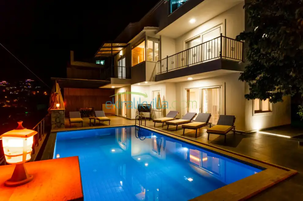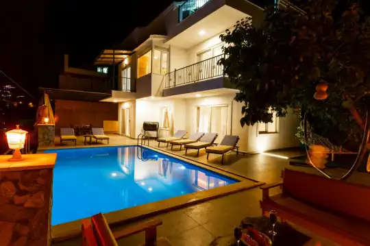 Panoramik kalkan ve deniz manzaralı , Geniş aile villası, Lüks iç ve dış dekorasyon, Sakin bir konum, Havuz terasında barbekü, Jakuzili özel tatil villası, Kalkan merkeze ve denizine yakın konumda bulunan kiralık villa ve yazlıklar, Kalkan günlük kiralık lüks tatil evi. Kalkan muhafazakar villa