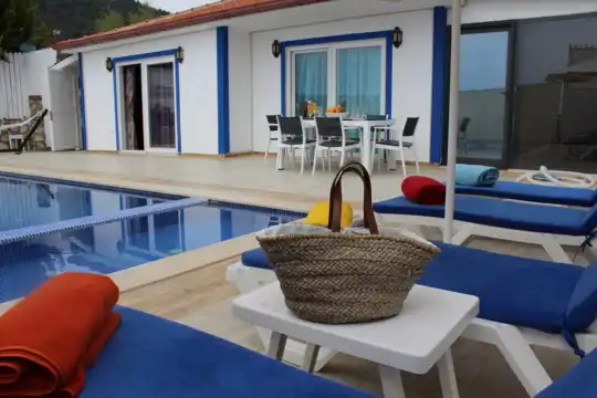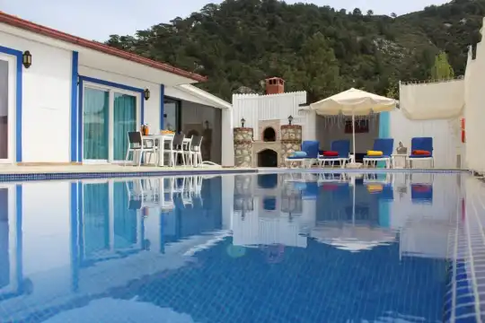 İslamlar köyü Korunaklı Villa, Kalkan Balayı villası, açık ve kapalı havuzlu, ısıtmalı havuzlu, Balayı çiftlerine uygun, Doğa Manzaralı, Kalkan Kiralık Lüks Villa, İslamlar tesettürlü muhafazakar kiralık balayı villası.