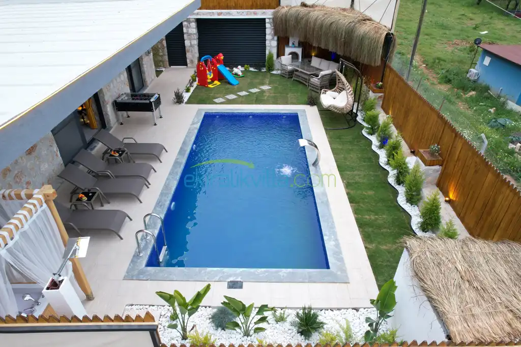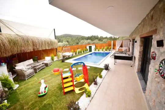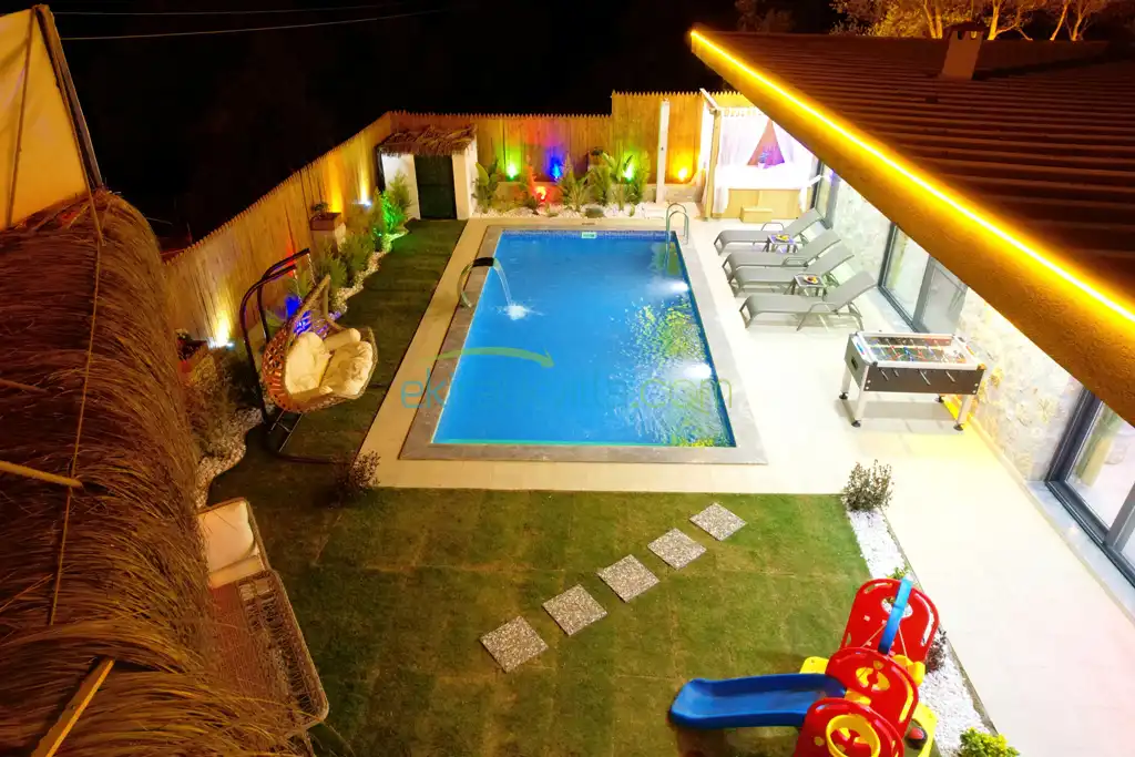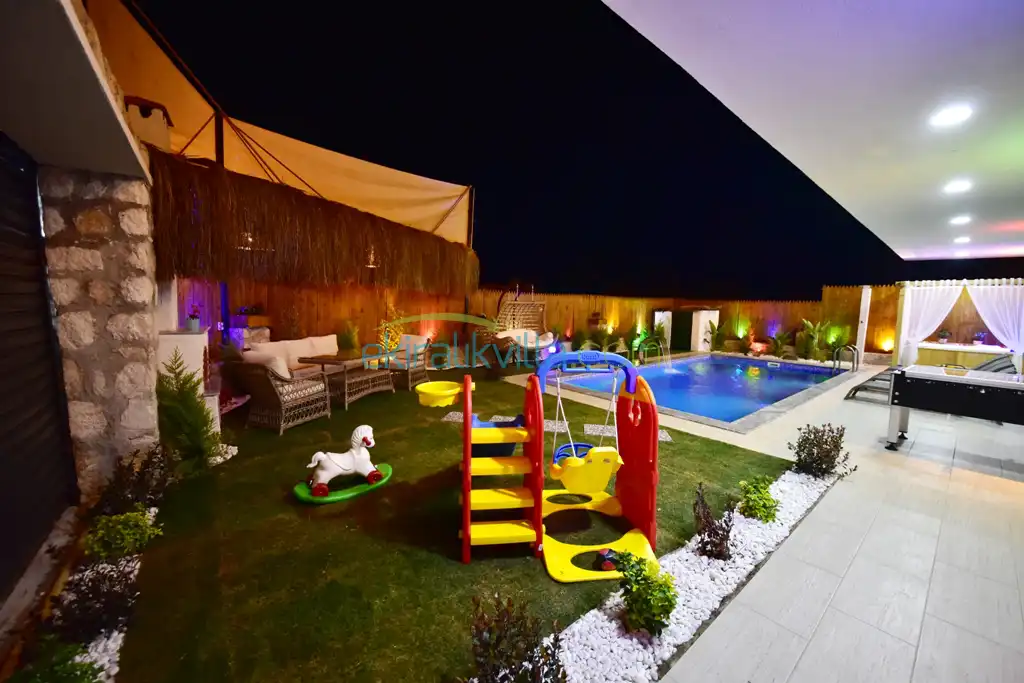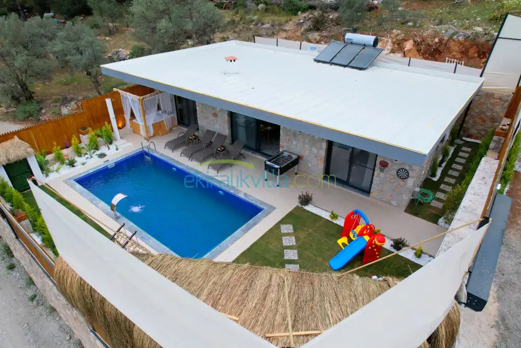 Panoramik doğa manzaralı, Şık iç ve dış dekorasyon, Sakin bir konum, Korunaklı balayı villası, Kalkan muhafazakar aile villası, Jakuzili özel tatil villası, Gezilip görülmesi gereken yerlere yakın yakın konumda olan kiralık villa ve yazlıklar, Çocuk Park Oyun Alanı