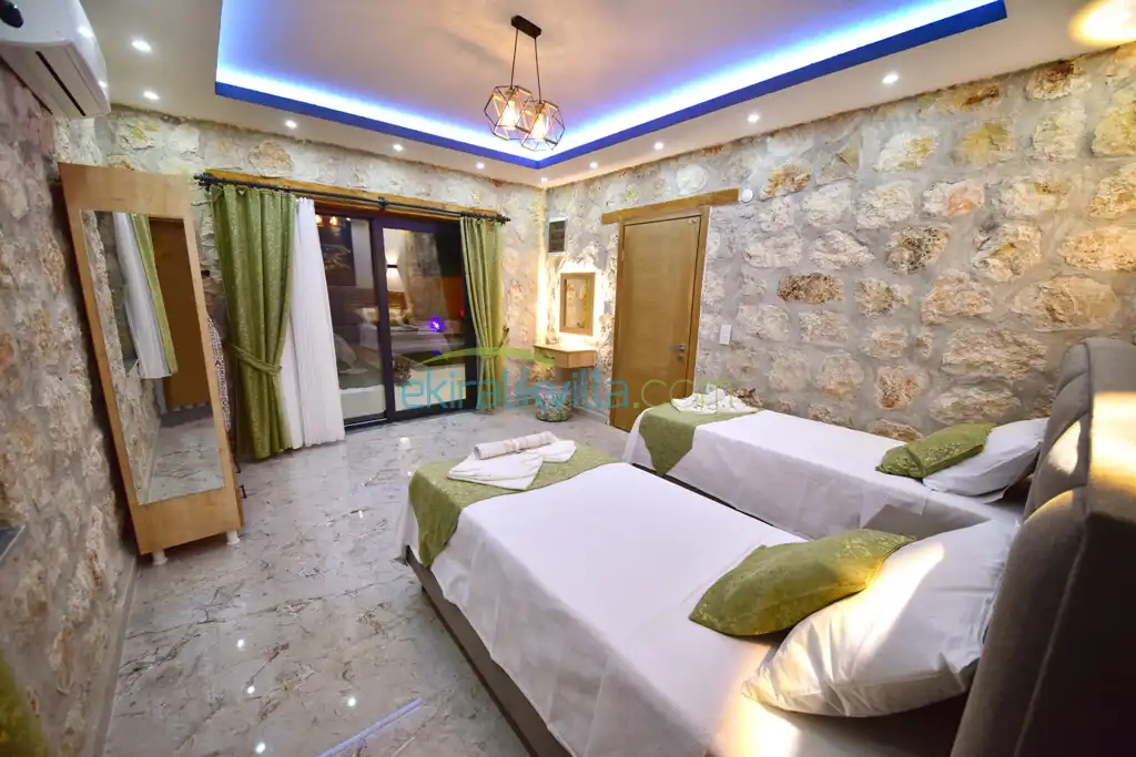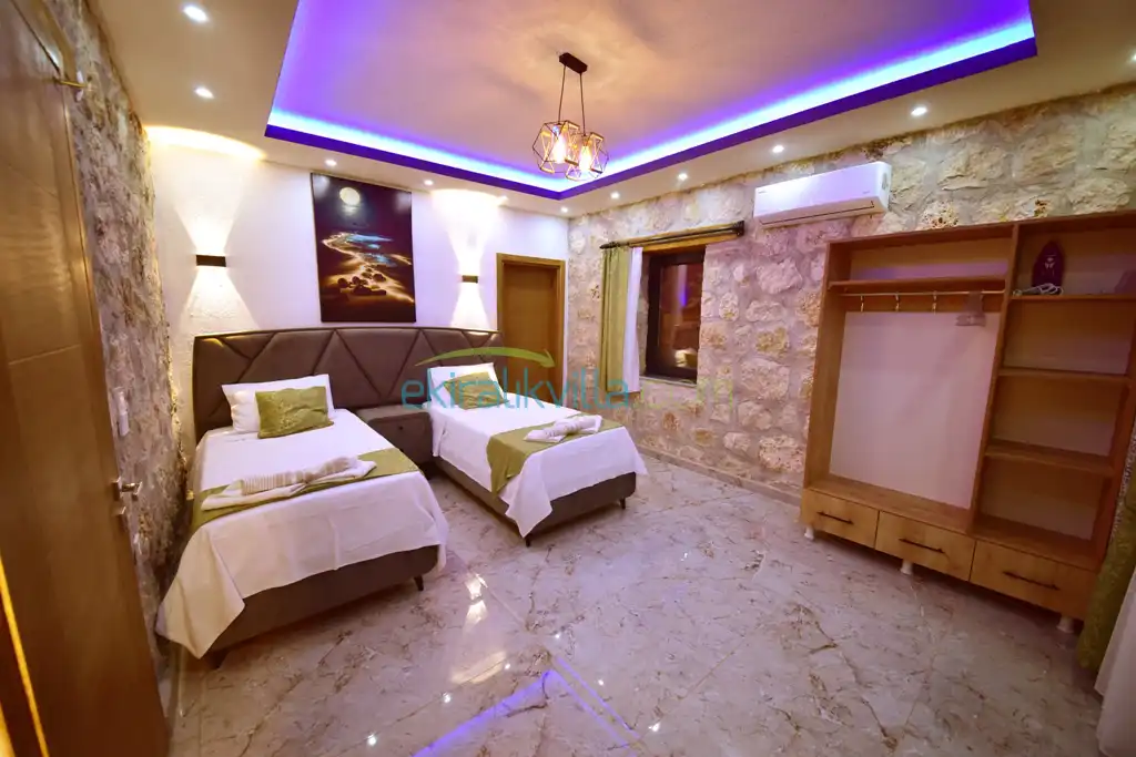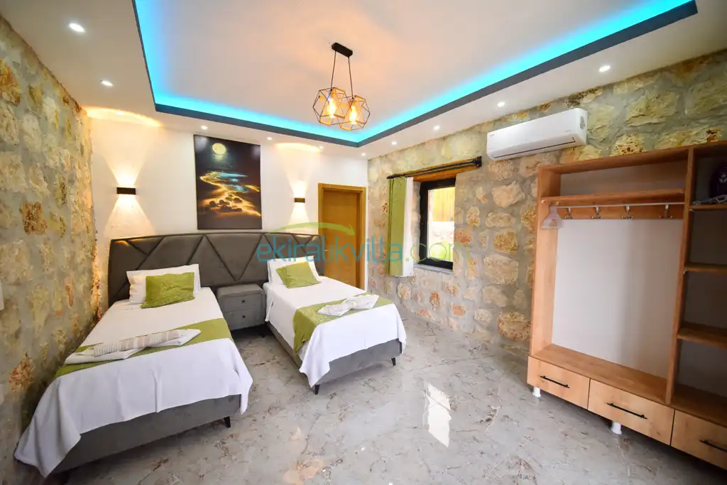2. Yatak odası : 2 adet tek kişilik yatak, elbise dolabı, saç kurutma makinası, klima, banyo ve tuvalet vardır.