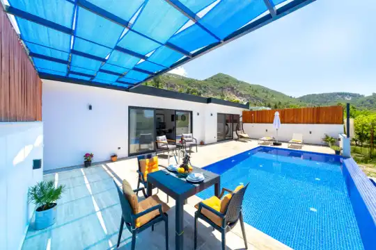 Panoramik doğa manzaralı, Muhafazakar aile villası, Şık iç ve dış dekorasyon, Sakin bir konum, İslamlar doğa ve yeşillikler içerisinde kiralık villa, Havuzu dışarıdan gözükmeyen İslamlar balayı villası, Kalkan günlük kiralık villam.