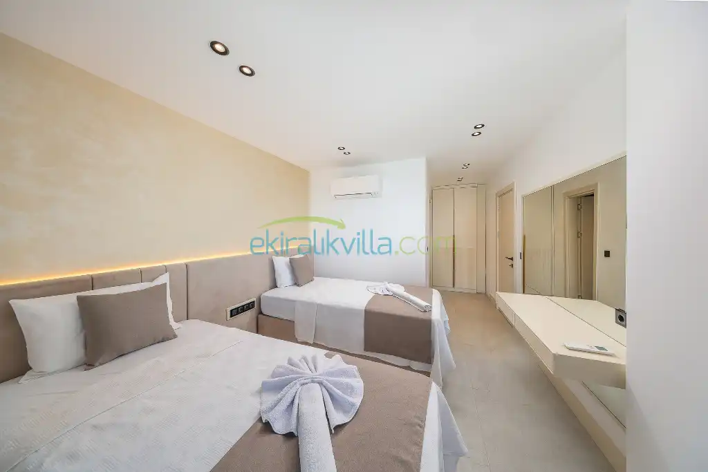2.Yatak odası: 2 adet tek kişilik yatak, elbise dolabı, saç kurutma makinası, klima, banyo ve tuvalet bulunmaktadır.