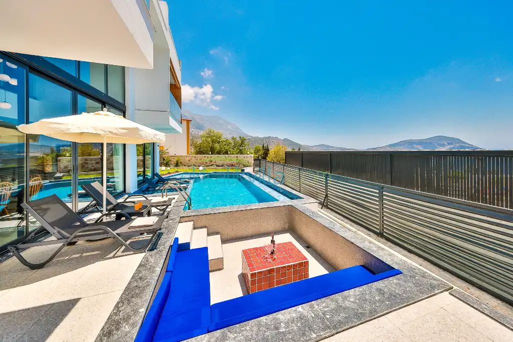 Eşsiz kalkan ve adalar manzaralı, Lüks iç ve dış tasarım, Kalkan günlük kiralık villa, Merkeze yürüyüş mesafesin kiralık villa, Kalkan özel tatil villası, Lüks kiralık villada tatil imkanı, Kalkan merkeze ve denize yürüyüş mesafesinde kiralık villa.