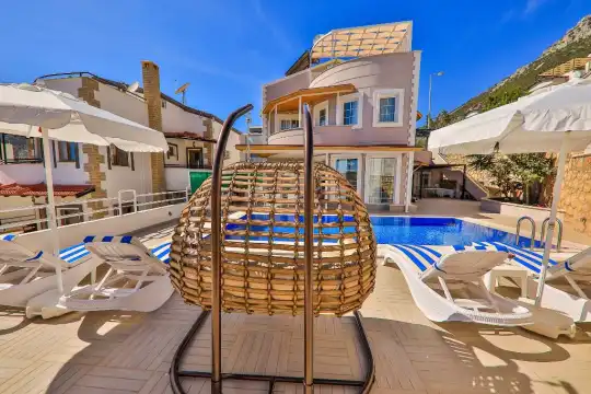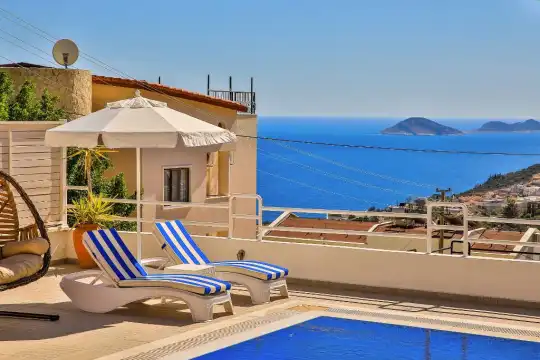 Panoramik kalkan ve deniz manzaralı, Geniş aile ve arkadaş grubu, Özel jakuzili villa, Kalkan merkeze ve denize yakın villa, Masa tenisli villa.