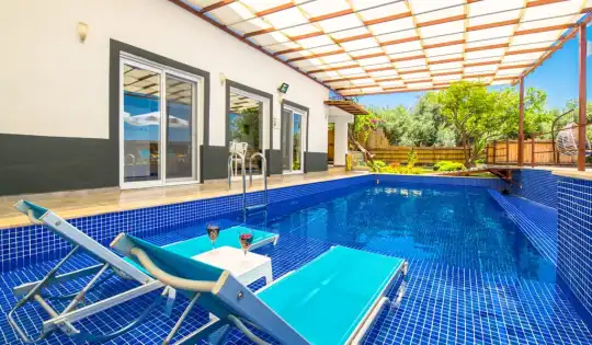 Korunaklı yazlık kiralık villa, Kaliteli ve modern iç ve dış dekorasyon, Sakin bir konum, Muhafazakar balayı villası, Kalkan günlük kiralık villa ve yazlıklar, özel yüzme havuzlu kiralık villa, Kalkan kiralık villa.