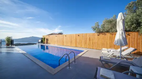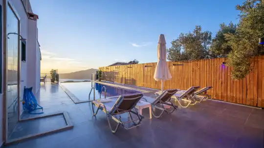 Panoramik kalkan ve deniz manzaralı, Aile villası, Lüks iç ve dış dekorasyon, Sakin bir konum, Havuz terasında mangal, Jakuzili özel tatil villası, Kalkan merkeze ve denizine yakın konumda bulunan kiralık villa ve yazlıklar, balayı villa, özel havuzlu villa, Kalkan günlük kiralık lüks tatil evi. Kalkan muhafazakar villa.