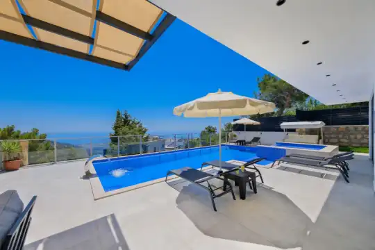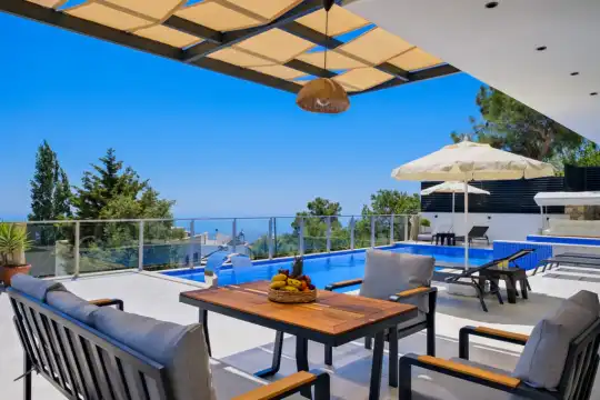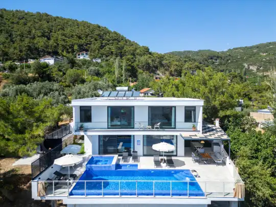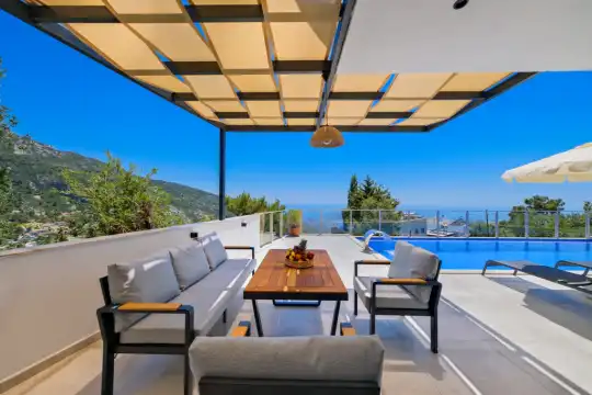 Doğa ve Deniz manzaralı, Balayı çiftine uygun, Oda içi jakuzi, Olimpik havuz, Muhafazakar tatil balayı villası, Modern iç ve dış eşyalar, Tam korunaklı tatil villası, Kalkan Kiralık Villa.Saunalı Villa, Langırt,Masa Tenisi,Çift Jakuzili.
