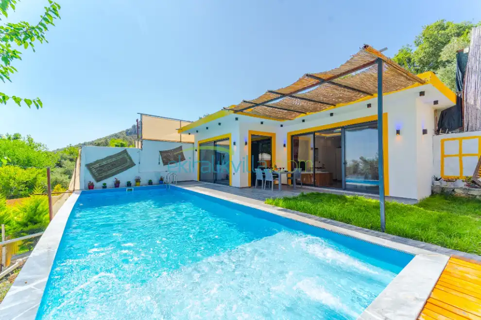 Kiralık Villa Efem İslamlar, Kalkan İslamlar Köyü’nde tek yatak odalı, 2 kişilik konaklama kapasitesine sahip, jakuzi, özel havuzlu, havuz başında barbekü, salıncak, yeşillik alan, villamızın içerisinde özenle dekore edilmiş lüks dizaynlı, havuz etrafı kapatılmış olması nedeniyle muhafazakar tatil isteyen aile veya balayı çiftlerine oldukça uygun bir yazlık kiralık villa seçeneklerimizdendir.