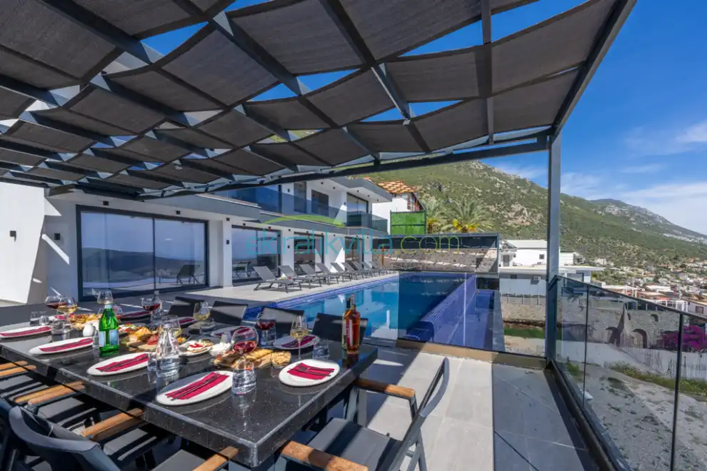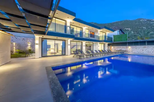Villamız yürümeyi sevmeyen kalkan merkezde villa isteyen, ailelere uygun, özel havuzlu, muhteşem terası ile tatilinizin tadını çıkaracağınız güzel bir modern 10 kişilik Kalkan Kiralık Villamızdır.