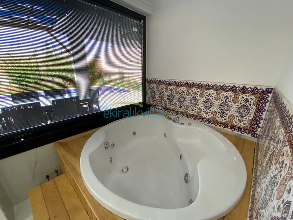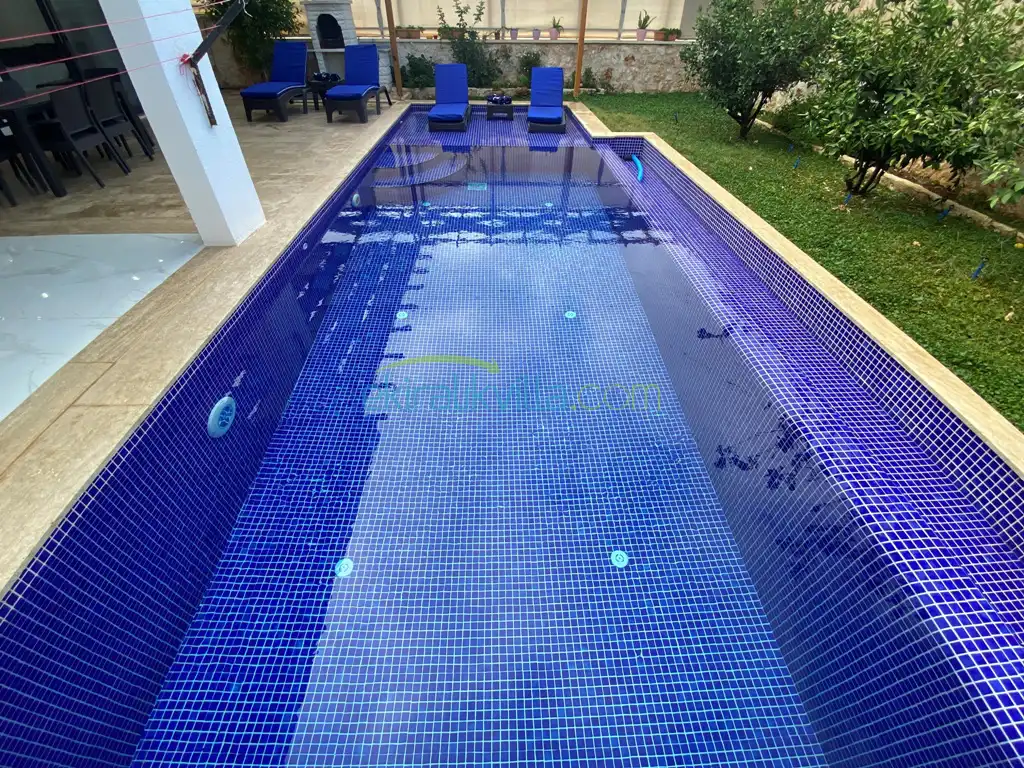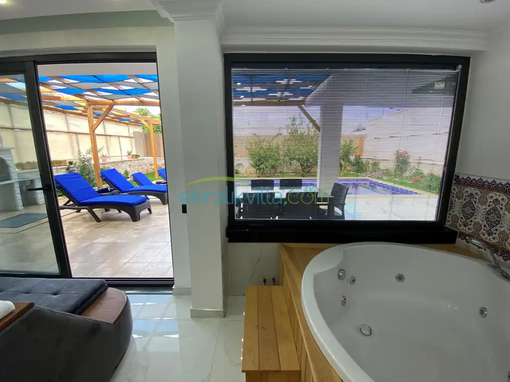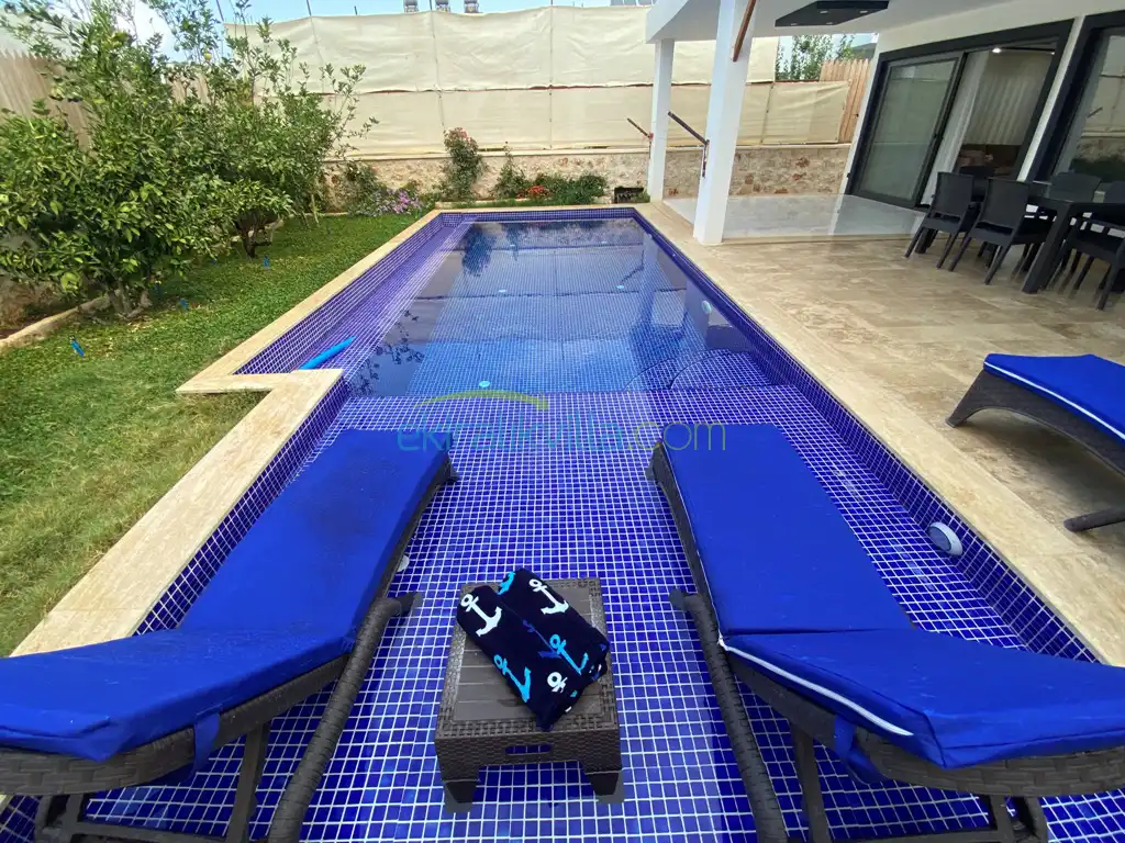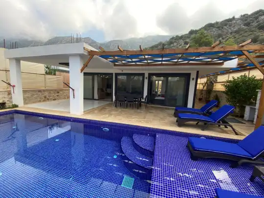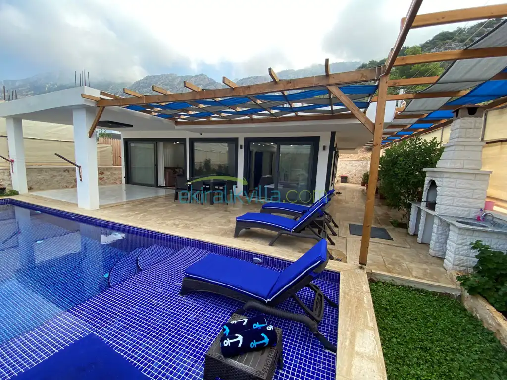 Geniş aile villası, Lüks iç ve dış dekorasyon, Sakin bir konum, Havuz terasında taştan barbekü, Jakuzili özel tatil villası, Kalkan merkeze ve denizine yakın konumda bulunan kiralık villa ve yazlıklar, balayı villa, Kalkan günlük kiralık lüks tatil evi. Kalkan muhafazakar villa.