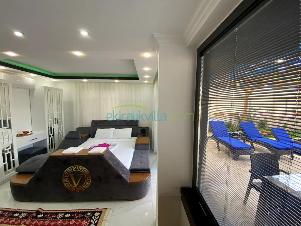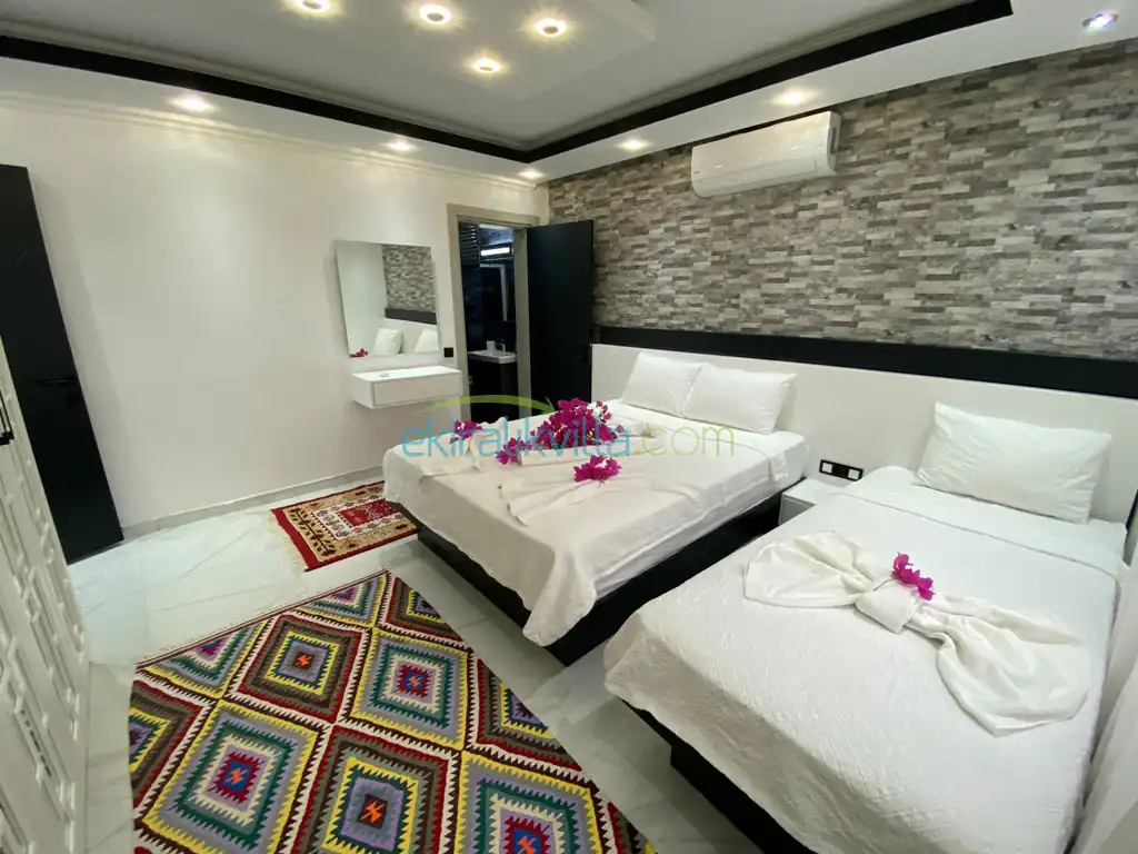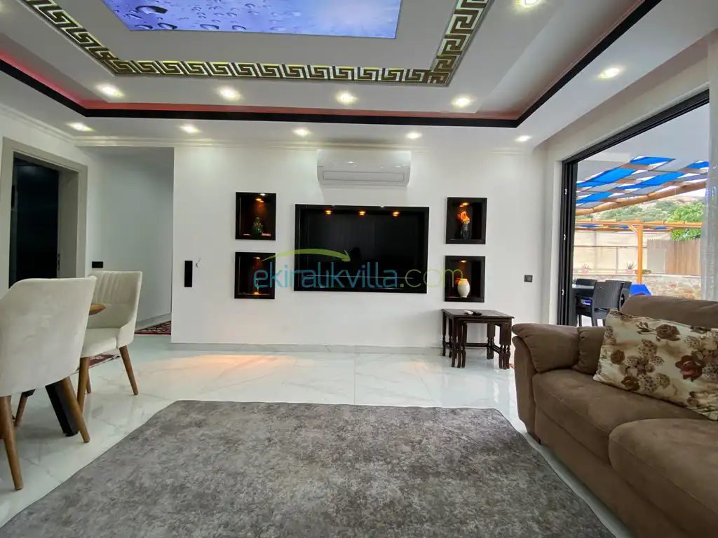 Kalkan günlük kiralık villamızın içerisinde kaliteli, modern ve lüks eşyalar ile özenle dekore edilmiş olup, kalkan yazlık tatil evimiz kalkan merkeze ve denize 5 dk sürüş mesafesinde, market, manav, restorant gibi tesislerede 5 dakika sürüş mesafesinde bulunmaktadır.