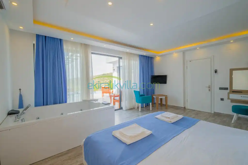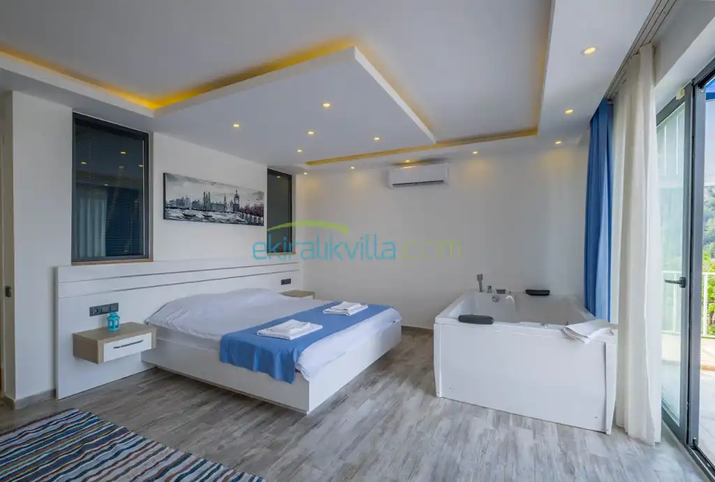 1. Yatak odası : 1 adet çift kişilik yatak, elbise dolabı, saç kurutma makinası, klima, balkon, banyo ve tuvalet,jakuzi mevcuttur.