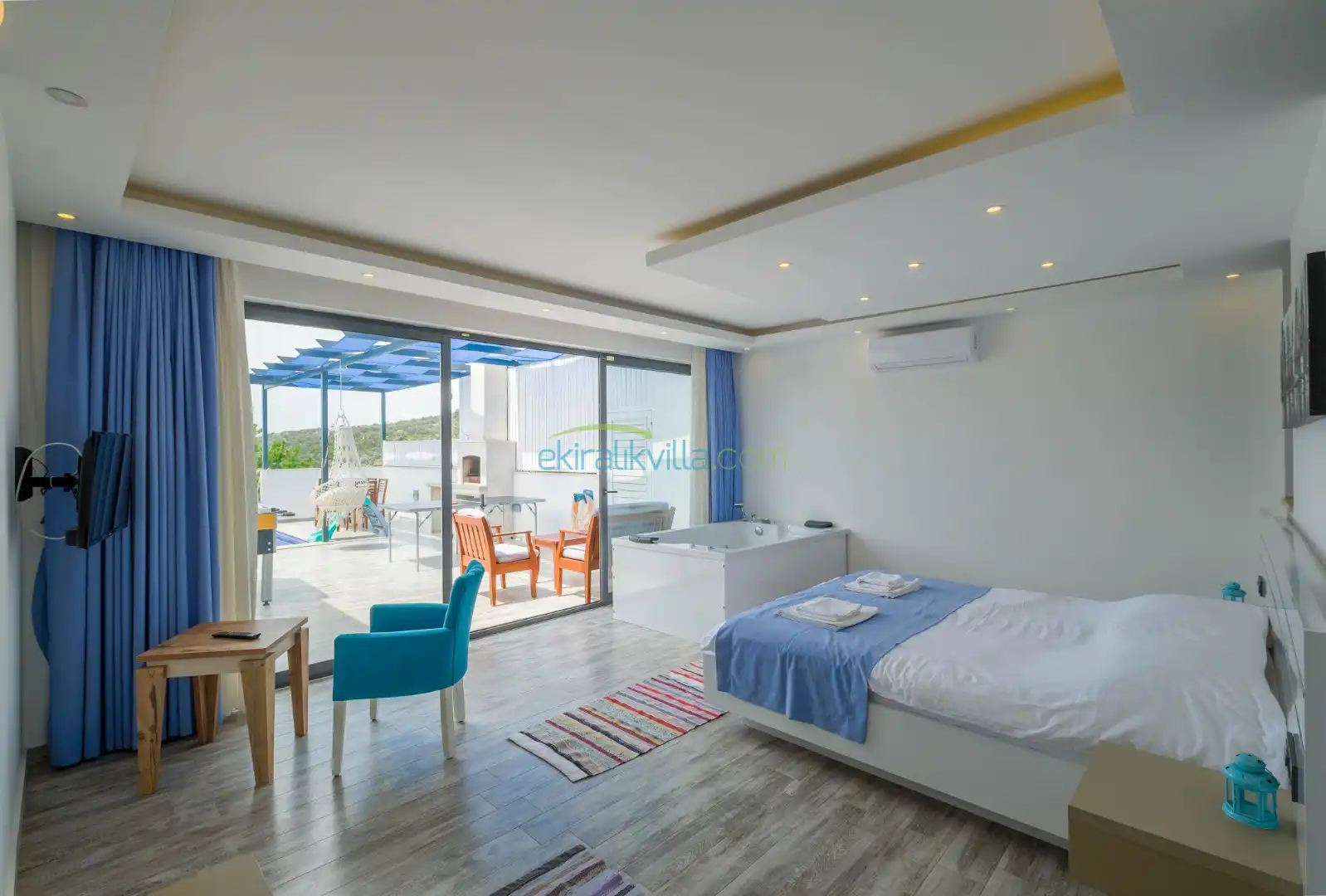 Tam korunaklı balayı villası, Balayı çiftine uygun fiyatı uygun ucuz villa, Özel havuzlu kiralık villa, Sakin ve özel bir konum,Jakuzili, İzole tatil adresi,Mini Masa Tenisi,Langırt,Çocuk Kaydırağı