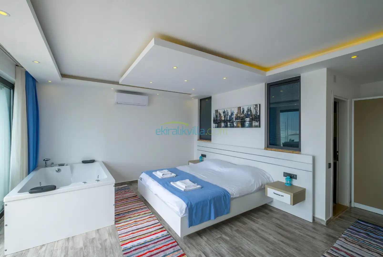 1. Yatak odası : 1 adet çift kişilik yatak, elbise dolabı, saç kurutma makinası, klima, balkon, banyo ve tuvalet,jakuzi mevcuttur.