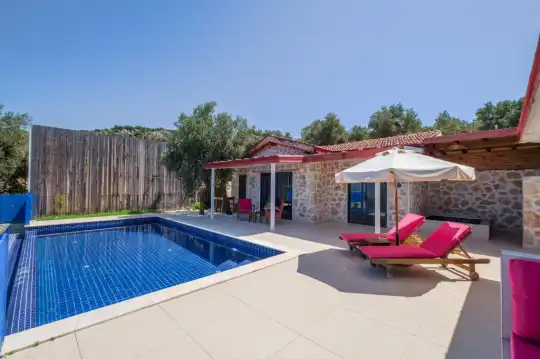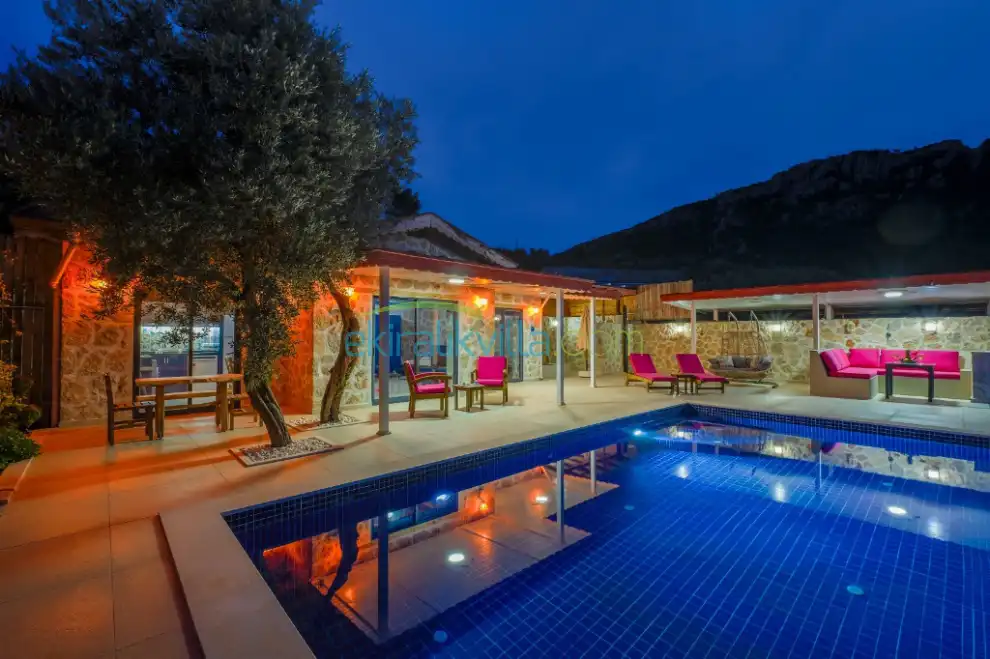 Tam korunaklı villa, Balayı çiftine uygun, Özel havuzlu villa, Sakin ve özel bir konum, Kalkan kiralık villa,
