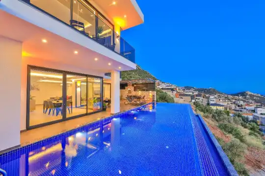 Panoramik Kalkan ve Deniz Manzaralı, Geniş aile villası, Lüks iç ve dış dekorasyon,Sakin bir konum, Havuz terasında barbekü, Jakuzili özel tatil villası, Kalkan merkeze ve Denizine yakın konumda bulunan kiralık villa ve yazlıklar, Kalkan günlük kiralık lüks tatil evi.