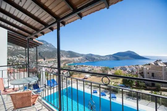 Kalkan ve deniz manzaralı, Müstakil villa, Kalabalık arkadaş grubu, Sakin bir konum, barbeküsü olan geniş teraslı villa, Kalkan merkez villa.