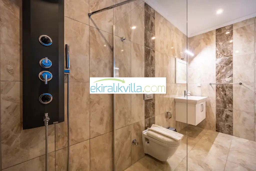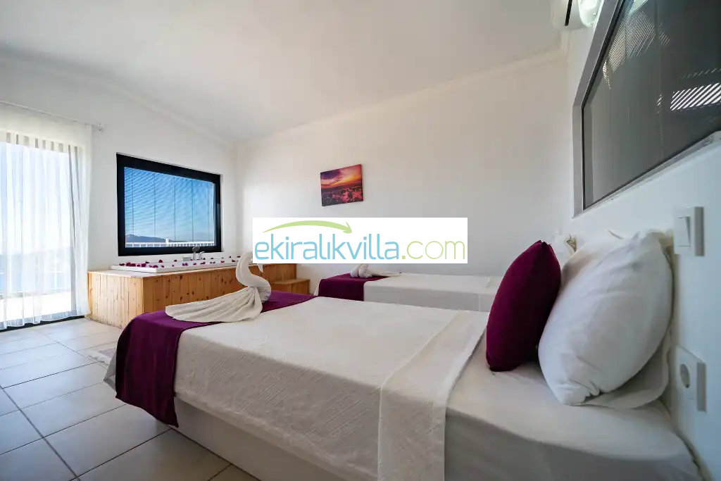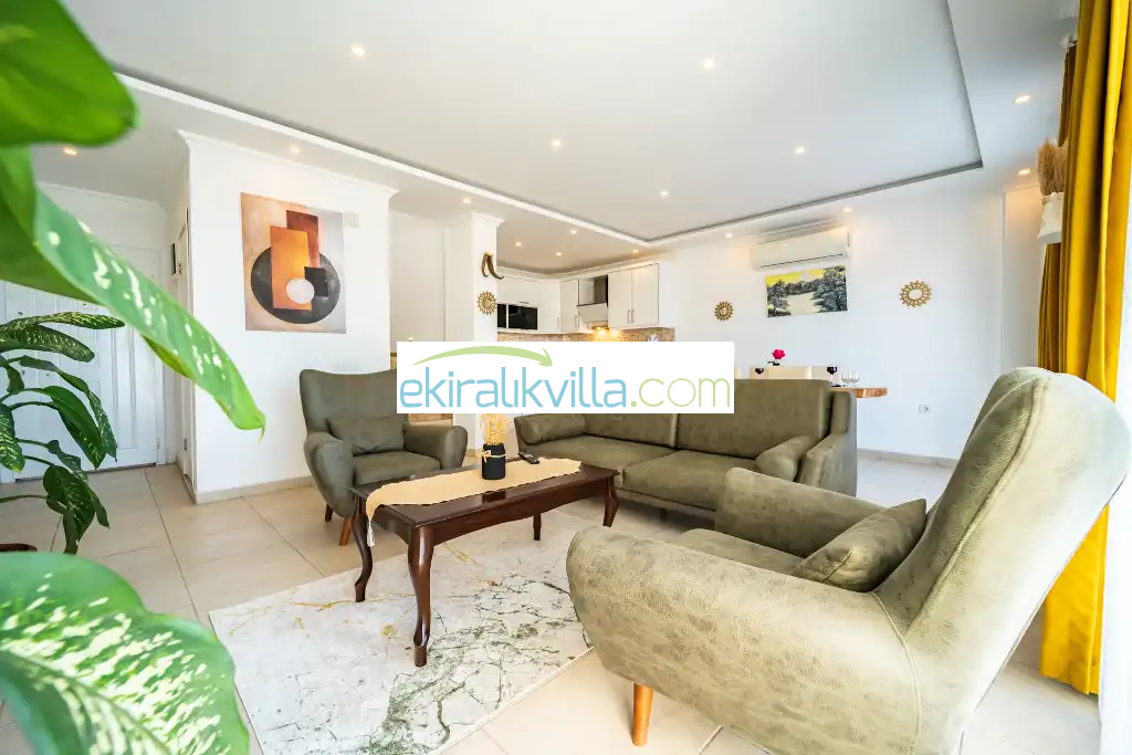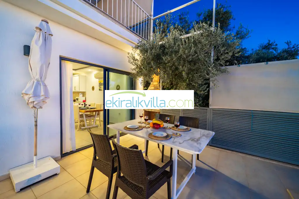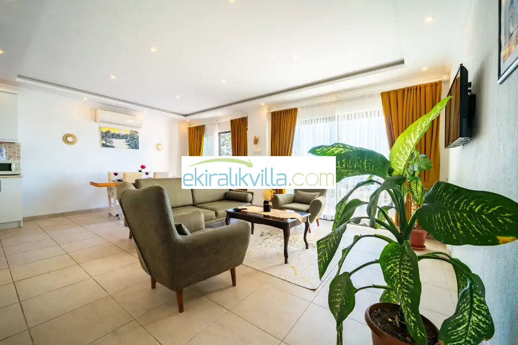 Kalkan günlük kiralık villamızın içerisinde kaliteli, modern ve lüks eşyalar ile özenle dekore edilmiş olup, kalkan yazlık tatil evimiz kalkan merkeze ve denize 10 dk sürüş mesafesinde, market, manav, restorant gibi tesislerede 5 dakika sürüş mesafesinde bulunmaktadır.