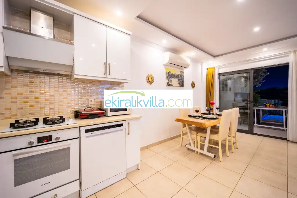 Villa Kayacan şık, şirin, rahat, geniş, lüks ve modern bir mutfağı vardır. Buzdolabı, bulaşık makinası, fırın, mikrodalga fırın, 4'lü ocak, ketıl, tost makinası, 4 kişilik yemek takımı, tava, tencereler, çatal, bıçak vb. Ayrıca tatil esnasında eksik bir ürün olursa bize söylediğiniz durumda hemen tedarik ediyoruz sizin için.