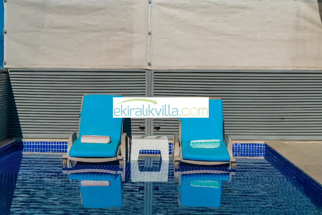 İç Havuz Isıtması fiyata dahil değildir. İstenildiği takdirde iç havuz ısıtması günlüğü 2000 TL'dir. Havuz ısıtma derecesi 24 ile 28 derece arasında hava koşuluna göre değişmektedir. Havanın rüzgarlı ve yağmurlu olma durumunda havuz ısıtma pompası aktif çalışıcaktır ama kötü hava koşulundan havuz suyu sıcaklığı düşmektedir yada beklenmedik bir durumda bölgede elektrik şirketi tarafından elektrik kesilmesi durumunda ve tekrar bir kaç saat sonra elektrik gelmesi ile havuzun ısınması belli bir zaman alıcaktır. Havuz ısıtması isteyen misafirlerimizin bu koşulları dikkate alarak önceden bunu bilmesini isteriz.