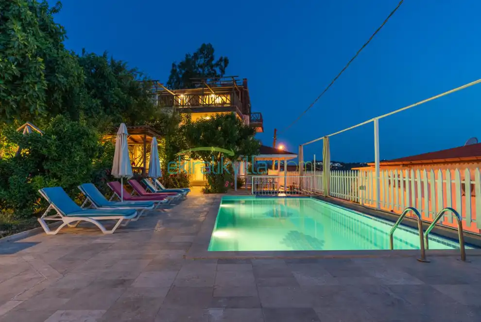 Villa Kelebek geniş havuzu, çocuk havuzu, modern ve lüks iç eşyalar, geniş salon ve mutfak, geniş odaları ve banyosu, geniş balkon ve İslamlar doğa manzarası ile unutulmaz bir tatil isteyen balayı çiftleri ve aileler için en çok tercih edilen korunaklı bir kiralık villamızdır.