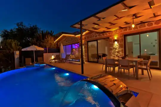 Antalya Kalkan'da bulunan 2 yatak odalı, 4 kişilik konaklama kapasitesine sahip, kalkan merkeze ve denize araba ile 10 - 15 dakikalık araba ile sürüş mesafede bulunan Jakuzili Kiralık Villa seçeneklerimizden Villa Kızılkaya siz değerli tatilcilerimizi bekliyor.
