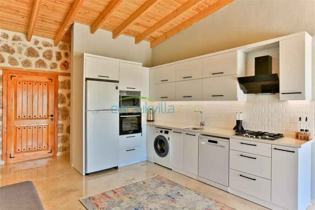 Villa Kızılkaya, şık, şirin, rahat, geniş, lüks ve modern bir mutfağı vardır. Buzdolabı, bulaşık makinası, fırın, mikrodalga fırın, 4'lü ocak, ketıl, 4 kişilik yemek takımı, tava, tencereler, çatal, bıçak vb. Ayrıca tatil esnasında eksik bir ürün olursa bize söylediğiniz durumda hemen tedarik ediyoruz sizin için.