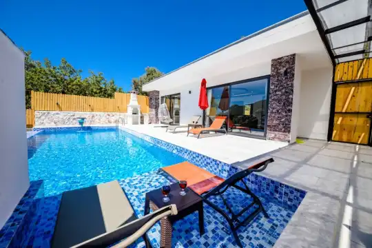Villa Kumru, islamlar köyünde 2 yatak odalı, 4 kişilik konaklama kapasitesine sahip, doğa manzaralı, oda içerisinde jakuzili, doğa ve yeşillikler içerisinde, havuzu dışarıdan gözükmeyen muhafazakar çiftlere uygun islamlarda kiralık muhafazakar balayı villamızdır.