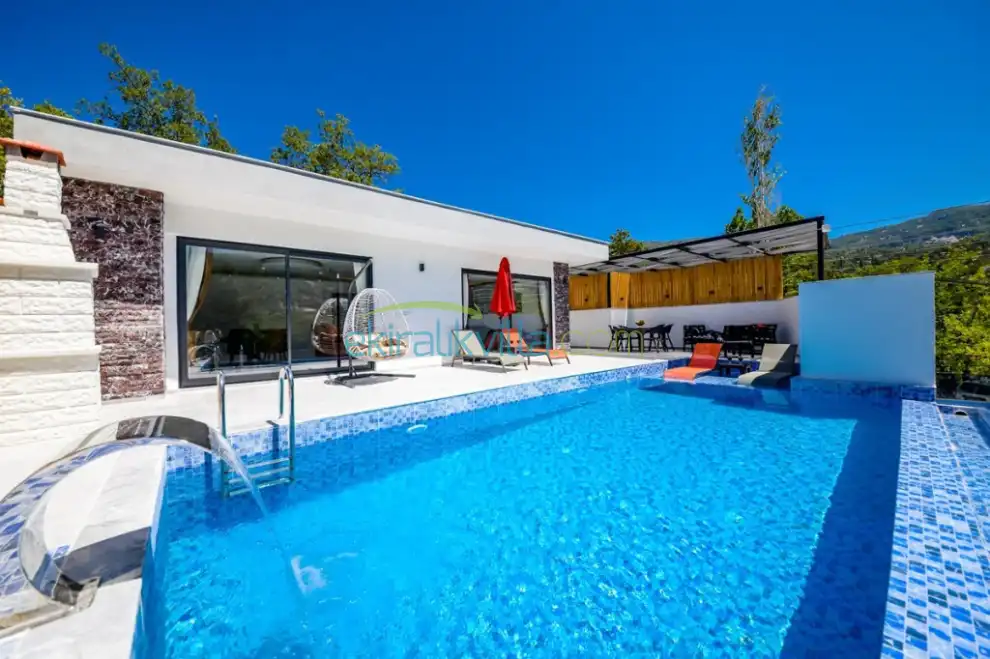 İslamlar köyü korunaklı villa, Kalkan Balayı villası, Jakuzili villa, Balayı çiftlerine uygun, Doğa manzaralı, Kalkan kiralık lüks villa, Villa Kumru İslamlar tesettürlü muhafazakar kiralık balayı villası.