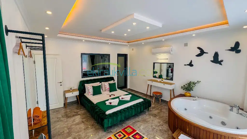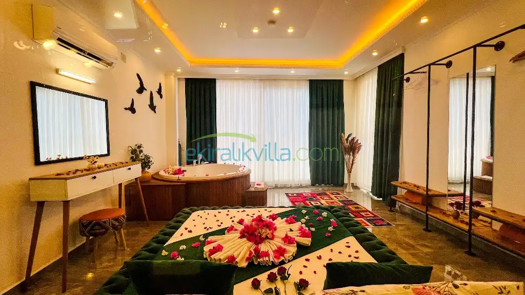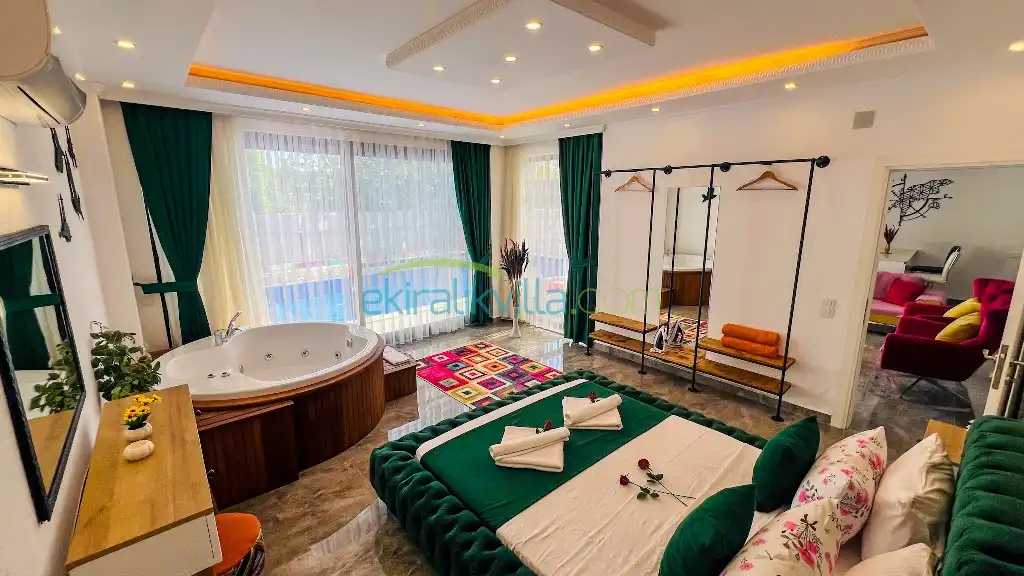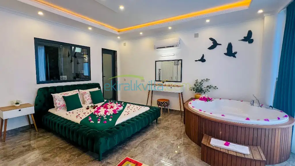 Tam korunaklı villa, Balayı çiftine uygun, Özel havuzlu villa, Sakin ve özel bir konum, Oda içerisinde jakuzi.