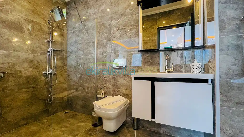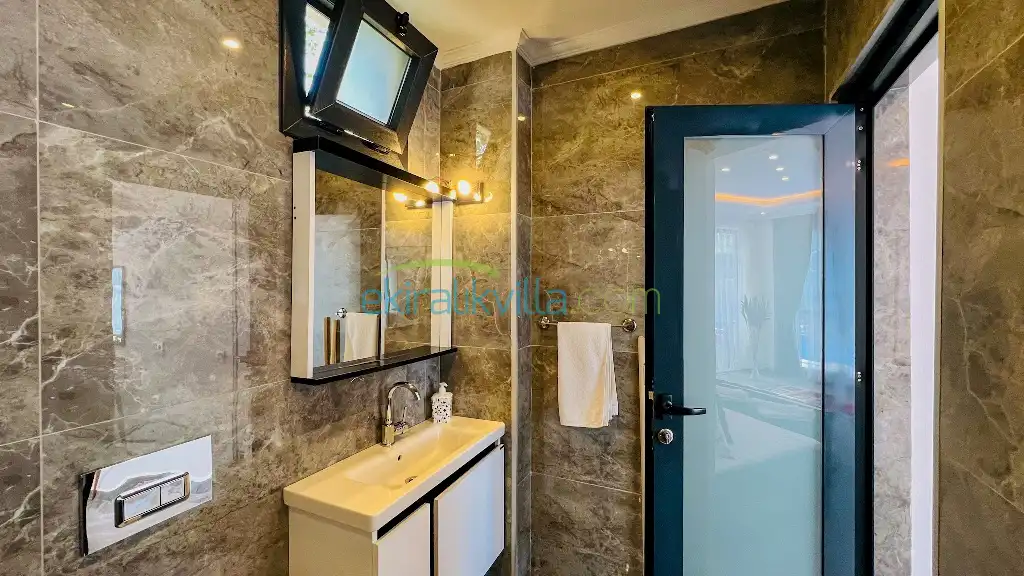 Antalya kiralik villamızın doğa ve yeşillik manzarası, havuz başı çim alanı, oda içerisindeki lüks jakuzisi, modern eşyaları ile yeşillikler arasında hoş bir elit tatil isteyen balayı çiftleri için mükemmel kalkan günlük kiralık villamızdır.