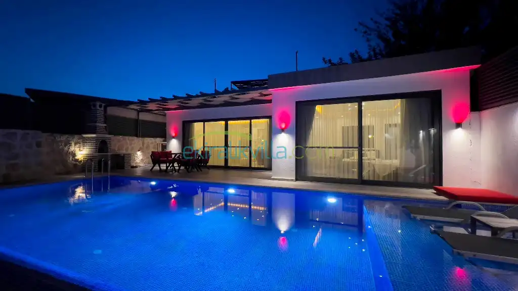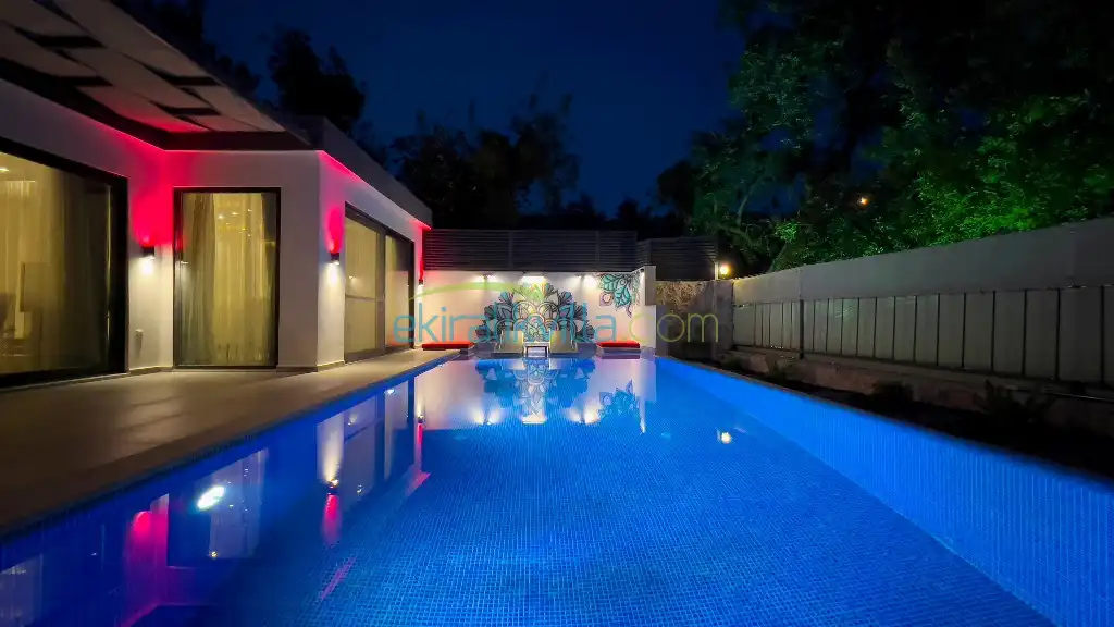 Yazlık kiralık villamız muhafazakar ailelere ve çiftleri rahatlıkla misafir edebileceği gibi odasında bulunan özel jakuzisi ile de balayı çiftlerinizi ağırlamaktadır. Titizlikle hazırlanmış olan bahçesi ve enfes manzaralı havuz terasında tatilinizi keyifle, rahatlıkla geçirebilmenin mutluluğunu yaşarken yılın tüm yorgunluğunu burada bırakabileceğinizden emin olabilirsiz.