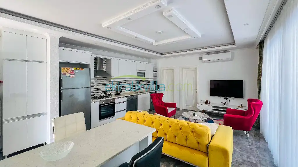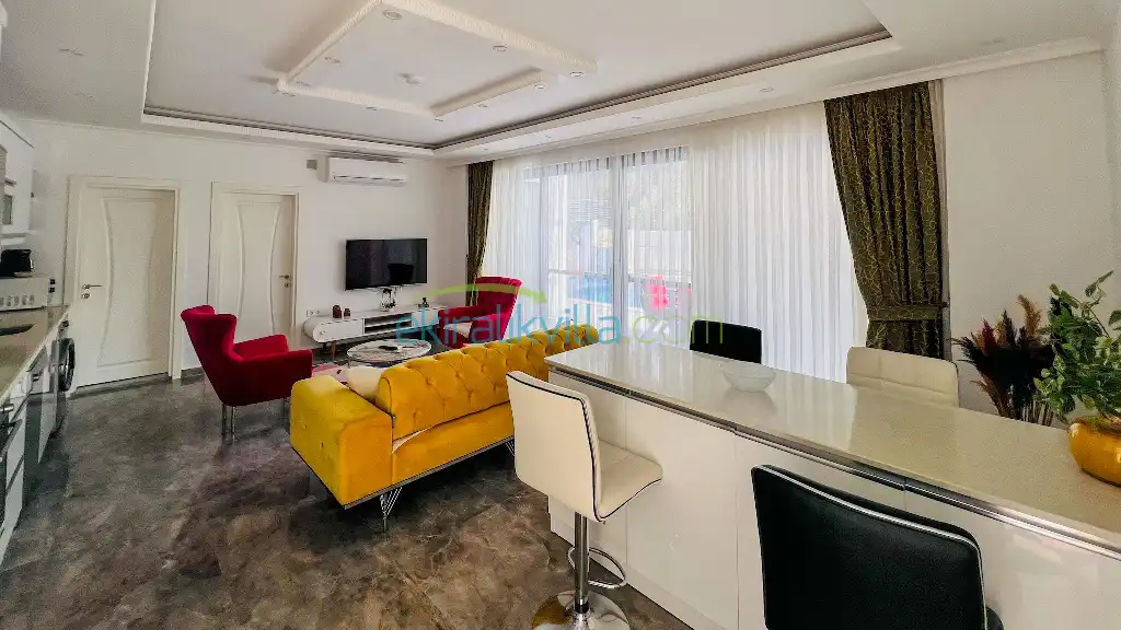 Salonumuzda rahat, modern, lüks oturma gurubu, tv ve uydu alıcısı, ütü masası, limitsiz kablosuz internet, havuz kıyısına ve bahçeye çıkış vardır.
