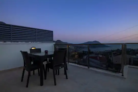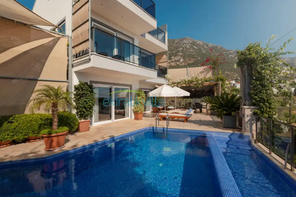 Küçük aile ve arkadaş grupları için uygun olan villamızın geniş havuz terasında Kalkan denizi manzarası eşliğinde kahvaltınızı yapabilir, yine sevdiklerinizle muhteşem gün batımı eşliğinde hoş bir akşam yemeğini yiyebilirsiniz. Huzurlu ve keyifli bir tatil isteyen siz misafirlerimiz için Kalkan Kiralık Villamız ideal bir tatil villasıdır.