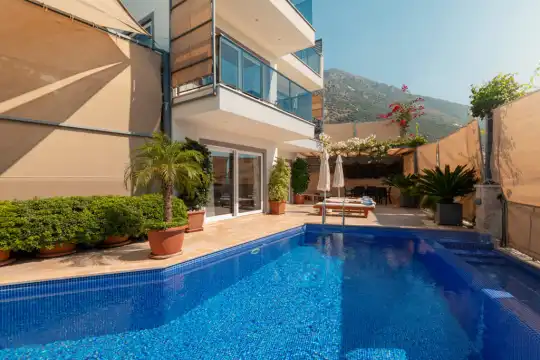Kalkan ve deniz manzaralı , Balayı çiftlerine uygun, Kalkan merkeze yakın, Müstakil villa, Etrafı özel perde ile kapatılan muhafazakar korunaklı villa, Çocuk havuzu isteyen misafirlerimize uygun.