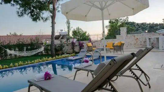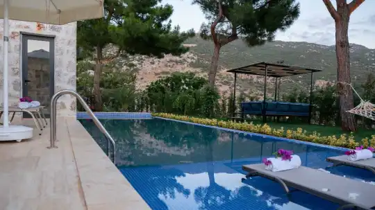 İslamlar köyü Korunaklı Villa, Kalkan Balayı villası, Kapalı Havuzlu, Isıtmalı havuzlu, Balayı çiftlerine uygun, Doğa manzaralı, Kalkan Kiralık Lüks Villa, İslamlar köyü Kiralık Villa, İslamlar tesettürlü Muhafazakar Kiralık Balayı Villası.