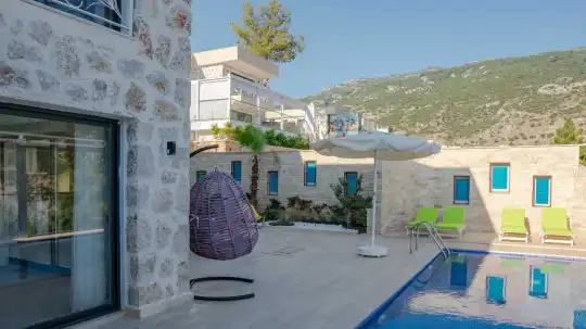 Villa Narin 2, Kalkan eşsiz bir konumda, muhteşem dağ ve doğa manzaralı huzurlu ortama sahiptir. Havuz terasımızda ve bahçemizde salıncak, şezlong, güneşlenme şemsiyesi, barbekü ve oturma grubu vardır.